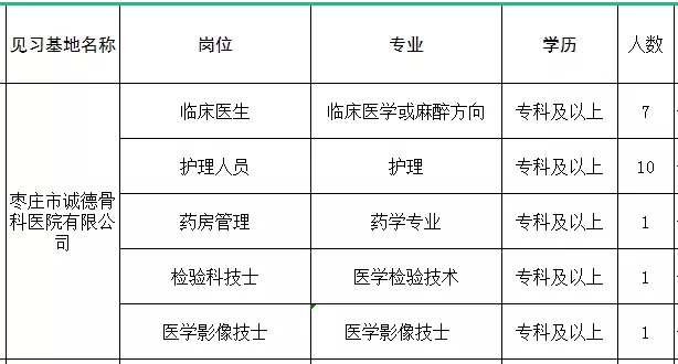 棗莊誠德骨科醫(yī)院2021年青年就業(yè)見習(xí)招聘公告