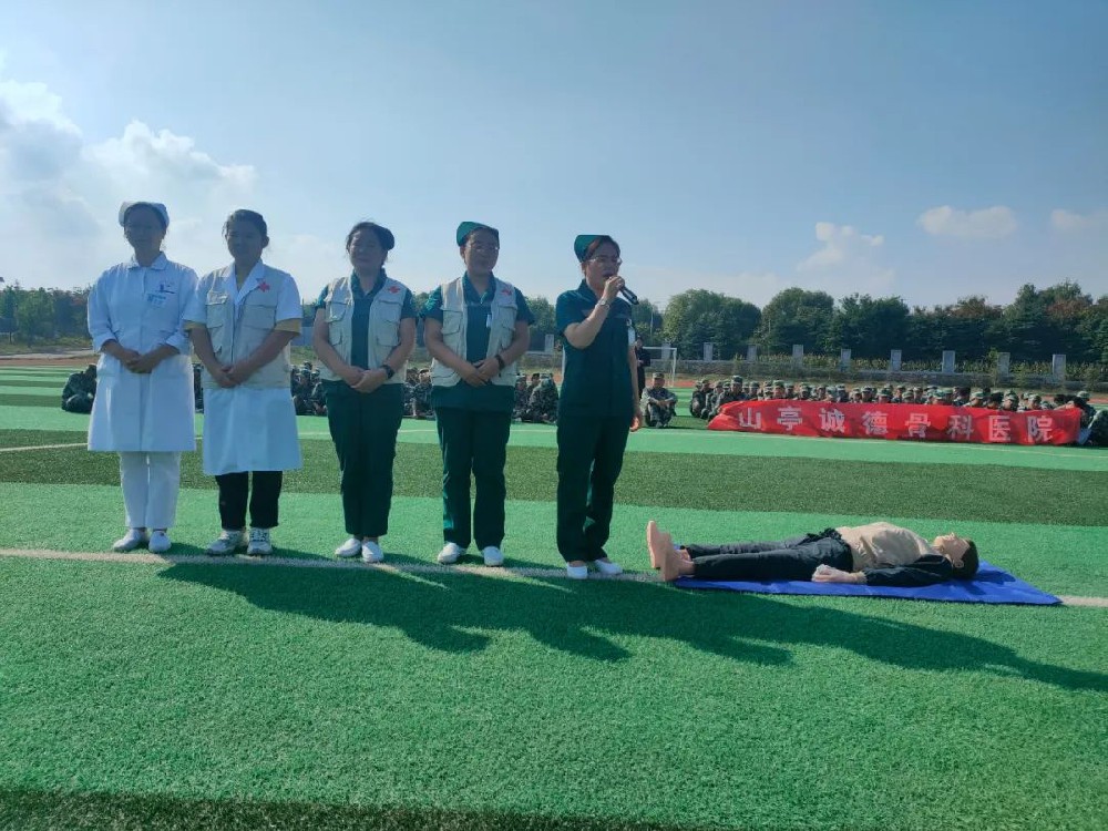 為確保山亭區(qū)職業(yè)中專2022級學(xué)生軍訓(xùn)能夠安全、順利、圓滿完成。山亭誠德骨科醫(yī)院受邀作為醫(yī)療保障單位,全程為學(xué)校師生保駕護(hù)航,并開展了現(xiàn)場急救技能培訓(xùn),為師生安全提供了強(qiáng)有力的保障。