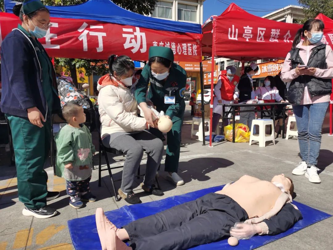 在活動現(xiàn)場,誠德醫(yī)院集團(tuán)醫(yī)護(hù)人員現(xiàn)場示范了心肺復(fù)蘇、解除成人及嬰幼兒氣道異物梗阻、溺水急救、止血包扎等常見急救知識和技能。培訓(xùn)過程中就如何掌握基本心肺復(fù)蘇技術(shù)的操作要點(diǎn)及注意事項(xiàng)進(jìn)行了細(xì)致講解,包括評估環(huán)境、意識、呼吸和脈搏、胸外心臟按壓、清理口腔異物、開放氣道、人工呼吸等操作要領(lǐng),并邀請現(xiàn)場群眾參與實(shí)操。
