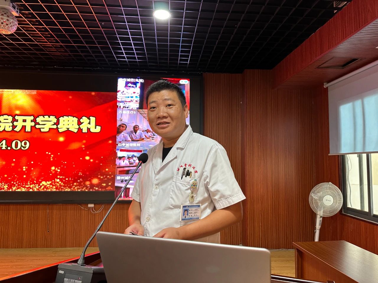 典禮期間,院長李俊峰發(fā)表了致辭,他在致辭中指出,醫(yī)學是一門神圣而崇高的職業(yè),它承載著生命的希望和人民的健康。同時從樹立遠大理想,明確學習目標、嚴謹治學,刻苦鉆研、關愛生命,敬畏生命、團結協(xié)作,共同進步、弘揚醫(yī)德,踐行醫(yī)道五點對學員們作出了具體要求,也為新的學期和新的征程拉開序幕。接著,副院長胡建平發(fā)表講話,為學員們明確了學習方向和目標。此次典禮由副院長王廣玲主持。