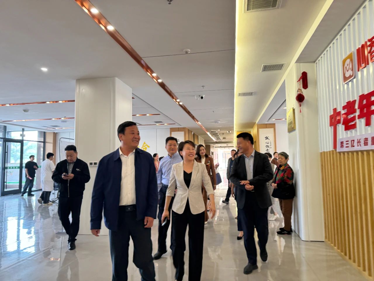 當(dāng)天,與會(huì)人員還來(lái)到醫(yī)養(yǎng)中心一樓慰問(wèn)看望老人。他們?yōu)槔先藗儙?lái)了節(jié)日的祝福和問(wèn)候,與老人們親切交談,了解他們的生活狀況和需求。老人們臉上洋溢著幸福的笑容,感受到了來(lái)自社會(huì)各界的關(guān)愛(ài)。